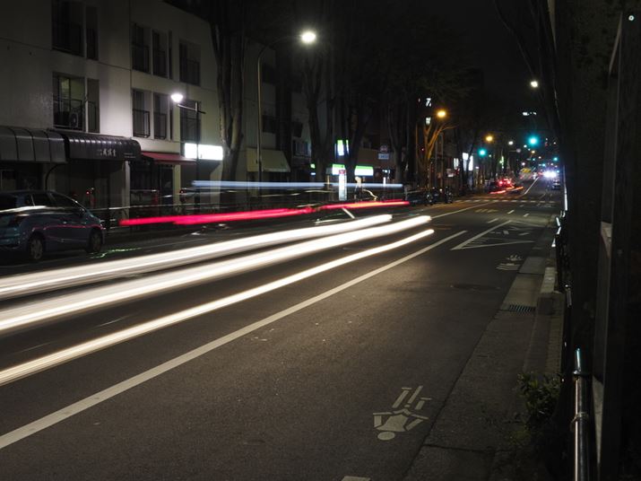 クルマのライトが光の軌跡を描く画像も手持ちで撮影できる
