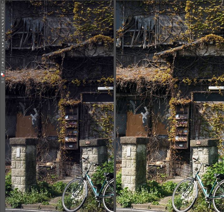 露出をマイナス補正したため左のOM-D E-M1 Mark IIの画像がやや暗いが、右の手持ちハイレゾのOM-D E-M1 Mark IIIと比較して、どちらもそん色ないことがわかる