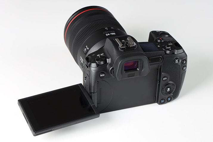 キヤノンは、中級機やエントリー機を中心に、ミラーレスや一眼レフの両方でバリアングル式を多く採用しています。画像はフルサイズミラーレスの「EOS R」