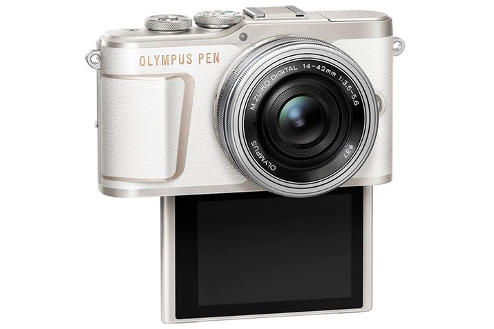 オリンパスのエントリー向けミラーレス「PEN E-PL10」は、下方向に180度モニターを動かして自分撮りが行えます
