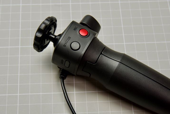 カメラとは有線で接続し、手元のボタンでシャッター、録画開始/停止、カメラのスリープという3つの操作が行えます