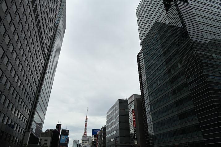 この2枚の作例は、どちらもJR浜松町駅近くで撮影したものになります。上の作例は広角端24mmで、やや上向きに角度を付けることで広角のパースを生かした構図にしてみました。光量は少ないですが、コントラストは十分。画像全体でシャープな画質に仕上がっています。カメラ側での補正処理があるとはいえ、広角特有の樽型の歪みもよく抑えられていると思います。