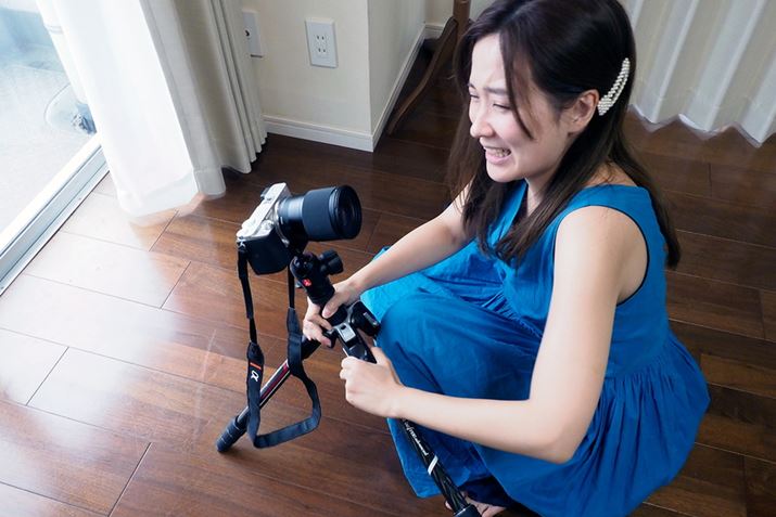 グリップにがっちりとしたホールド感があり、握力が弱い女子(私)がカメラを装着しても軽く両手を添えるだけで持ち上げることができました。