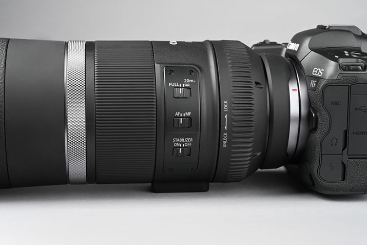 RF800mm F11 IS STMは、レンズを繰り出すことで撮影が可能になる伸縮機構を採用しています。レンズ収納状態から撮影可能状態にするには、1.マウント部近くのロックリングを操作してロックを外す→2.レンズを前方へ伸ばす→3.伸ばした状態でロックリングの位置を戻して鏡筒を固定する、の3ステップが必要です。なお、ロックを外した状態で下向きにすると自重でレンズが繰り出してしまうことがあるので、特に持ち運び時はロックすることを忘れないようにしましょう。
