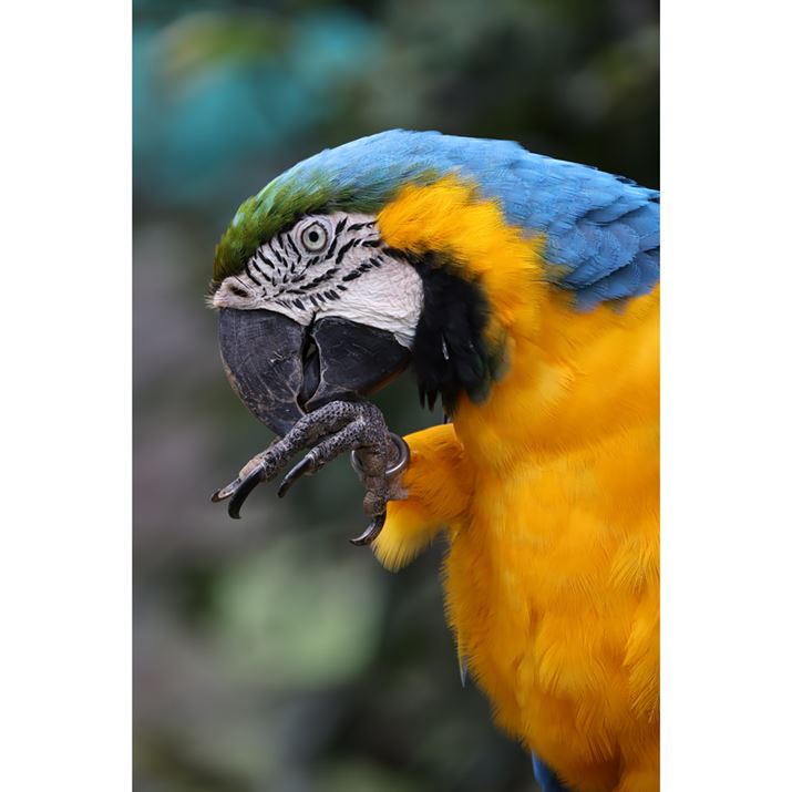 シャッタースピード1/80秒でインコを撮影した作例。遅いシャッタースピードですが、細かいところまで鮮明な画質で撮れました。RF800mm F11 IS STMは画面中央・横約40%×縦約60%のAFエリアに対応していますが、横約40%というのがやや狭く、特に縦位置での撮影だと画面の上下部分に対してAFを利用できない部分が広くなり、カメラまかせのサーボAFだとフレーミングしにくいと感じることがありました。被写体の大きさや構図にもよりますが、特に縦位置ではフォーカスロックを活用するなどの工夫が必要な場合が多くなると思います。