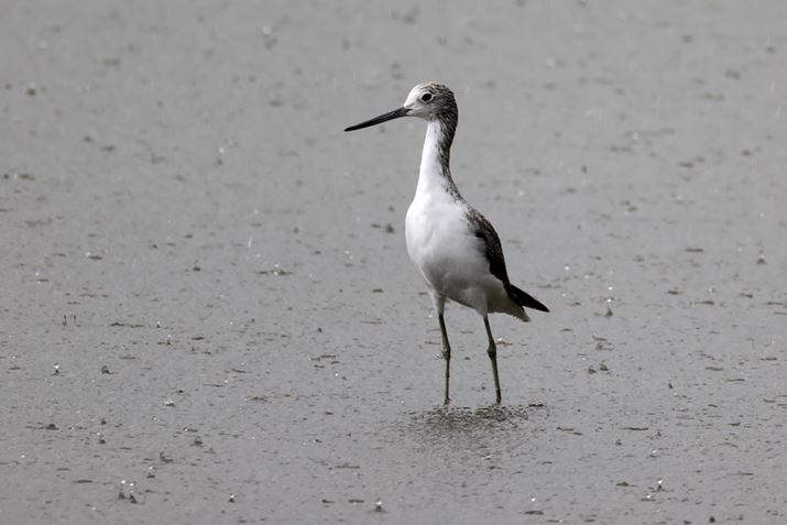 この作例もEXTENDER RF2×に約1.6倍クロップ(APS-Cクロップ)を組み合わせて焦点距離2560mm相当の画角で撮影したものになります。遠くで歩いているアオアシシギを大きく撮ることができました。被写体までの距離はおよそ40m。撮影写真を見ると、羽に付いた水滴まで写せていることがわかります。コントラストが低い状況だったので、RAW現像でトーンカーブを調整しています。