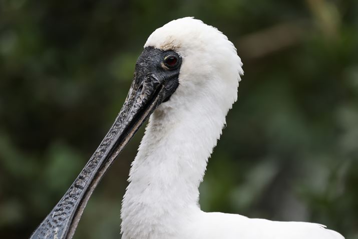 サーボAFで追従しながら、歩いているクロツラヘラサギの動きが止まったタイミングで、シャッタースピード1/250秒で撮影しました。動物検出がしっかりと働き、瞳にピントが合った写真になりました。