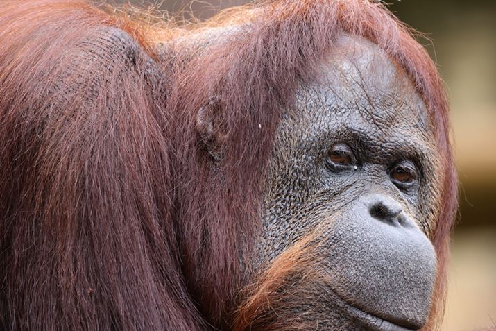 寝転がっているオランウータンを1/50秒のシャッタースピードで狙いましたが、手ブレの影響のない写真になりました。4段分の手ブレ補正効果ということですが、ある程度距離のある動かない被写体であれば、1/50秒程度のシャッタースピードでもブレなく撮ることができます。