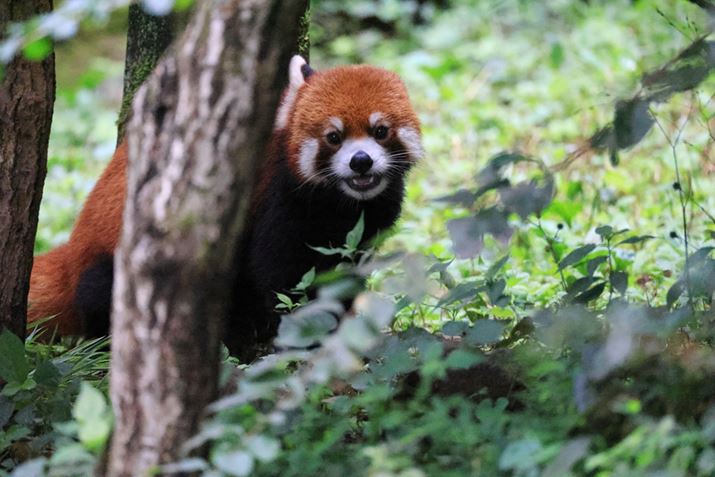 歩いているレッサーパンダを追従撮影した作例です。レッサーパンダの動きが止まるタイミングがなかったため、シャッタースピードを1/640秒に設定して被写体の動きが止まるようにしました。薄暗い状況だったので感度はISO25600まで上がっています。この作例もアンダー目の露出で撮影してRAW現像で仕上げていますが、ISO25600ということで、さすがにノイズが多くなっています。