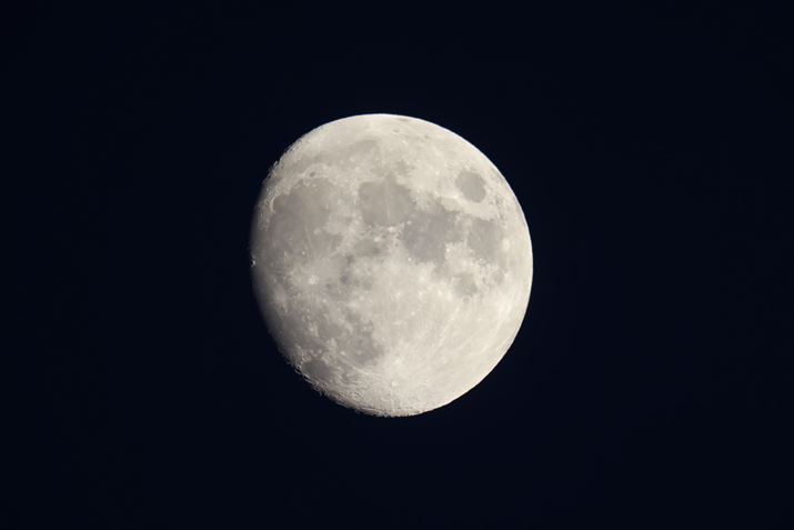 EXTENDER RF2×を装着して焦点距離を1600mmに伸ばすと月にここまで迫ることができます。シャッタースピードは1/40秒とかなり遅い設定ですが、手ブレの影響を抑えて撮ることができました。レンズ内手ブレ補正の性能の高さを実感した1枚です。