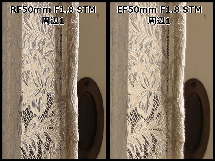 設計が見直されているということで画質の向上に期待する人も多いかと思いますが、RF50mm F1.8 STMは、EF50mm F1.8 STMと比べて絞り開放付近での写りがよくなっています。画像の中央部では違いがわかりにくいですが、周辺部は像が流れるような感じが抑えられていて、画面全体の均一性が上がっています。従来よりもボケが暴れるような感じも少なくなっているようで、撮影していて「開放付近が使いやすくなった」という印象を受けました。