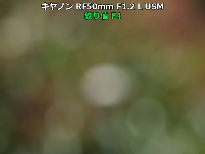 ・F1.4では、RF50mm F1.2 L USM+EOS R5とNIKKOR Z 50mm f/1.2 S+Z 7IIの玉ボケが大きい。F2以降では、RF50mm F1.2 L USM+EOS R5、NIKKOR Z 50mm f/1.2 S+Z 7II 、LUMIX S PRO 50mm F1.4+S1Rで玉ボケの大きさが変わらなくなる。