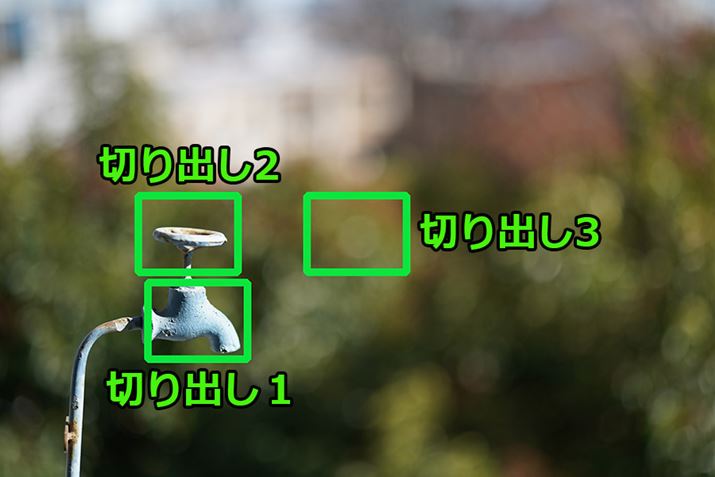 ・玉ボケの切り出し画像を見ると、やはりF1.4ではRF50mm F1.2 L USM+EOS R5とNIKKOR Z 50mm f/1.2 S+Z 7IIのボケ具合が大きい。F2以降ではLUMIX S PRO 50mm F1.4+S1RがRF50mm F1.2 L USM+EOS R5とNIKKOR Z 50mm f/1.2 S+Z 7IIと同じくらいの大きさの玉ボケとなる。