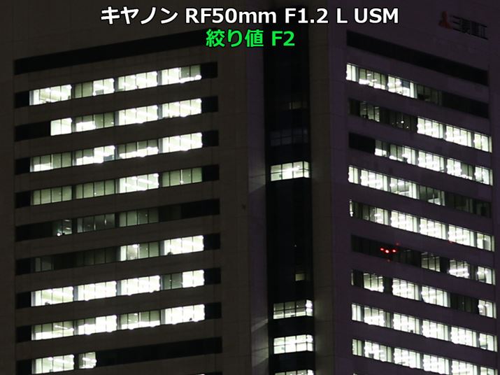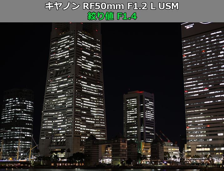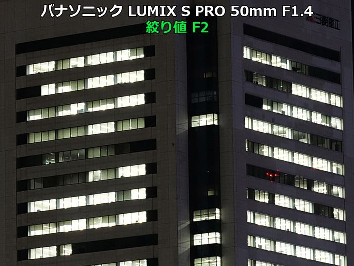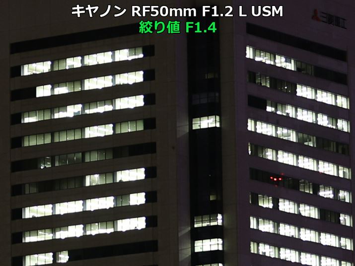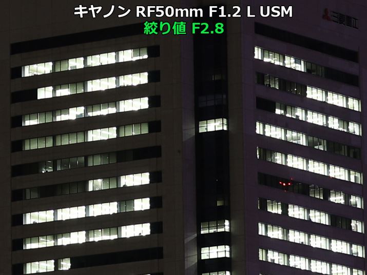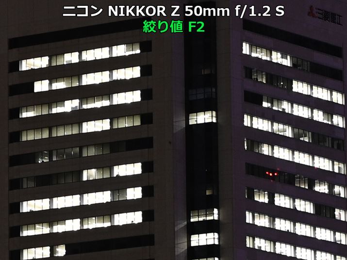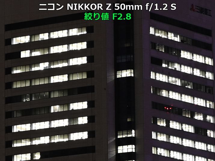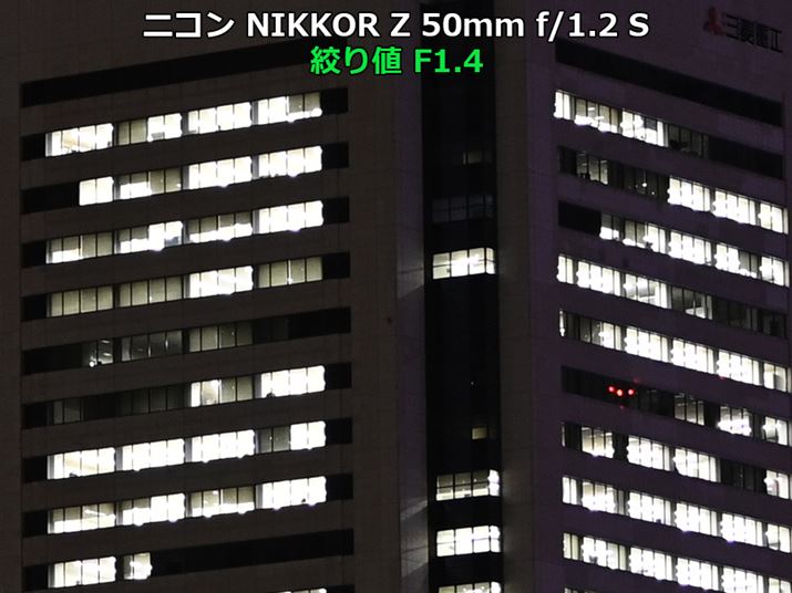 状況:晴天夜(日没約2時間)。被写体までの距離(ピント位置)は約250m(※ピントは写真左に位置する建物に合わせている)