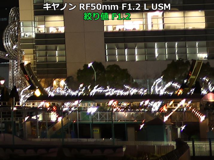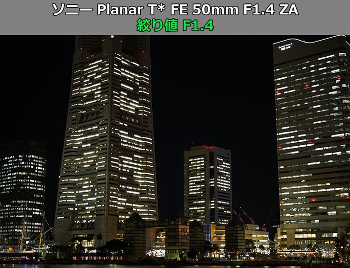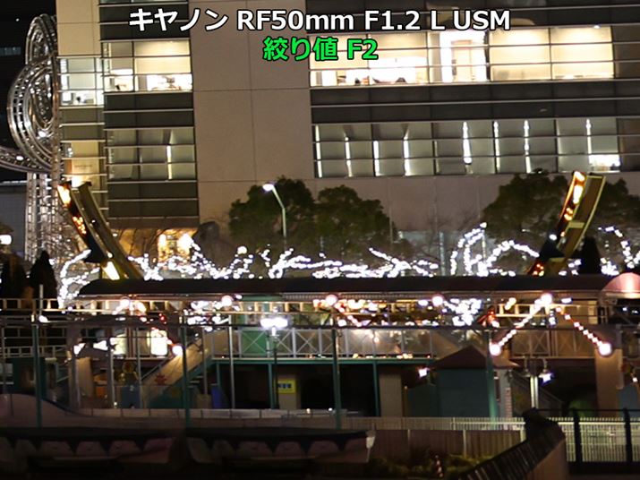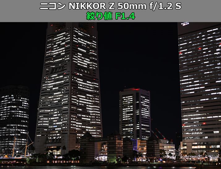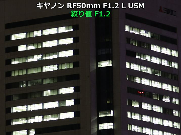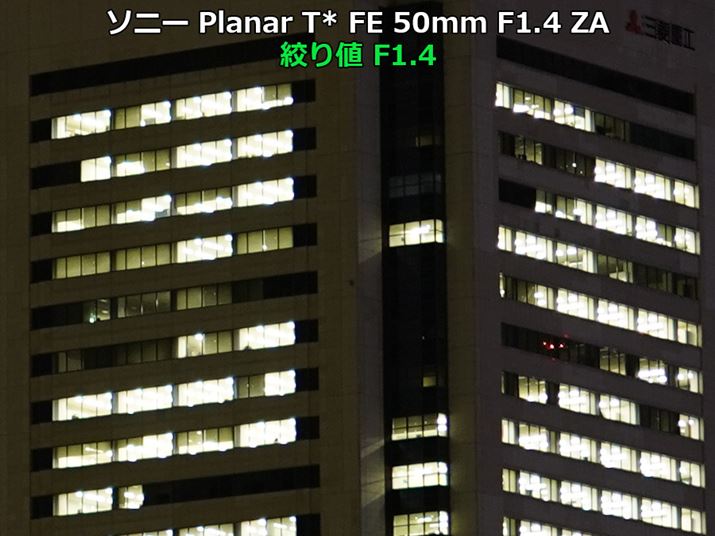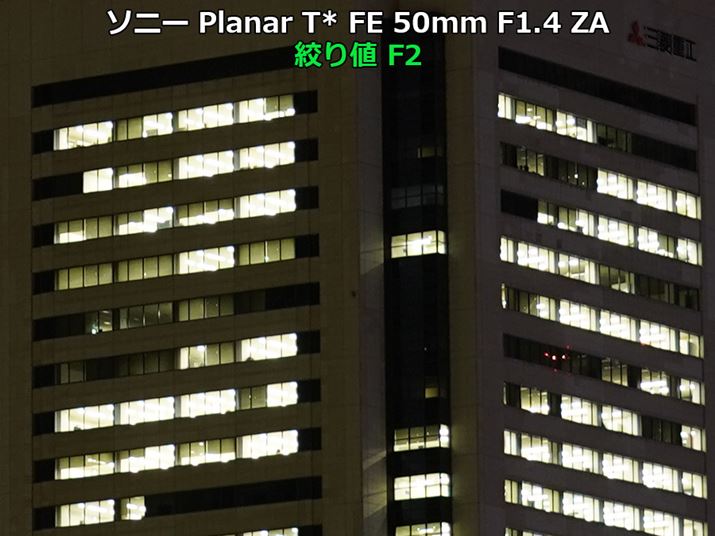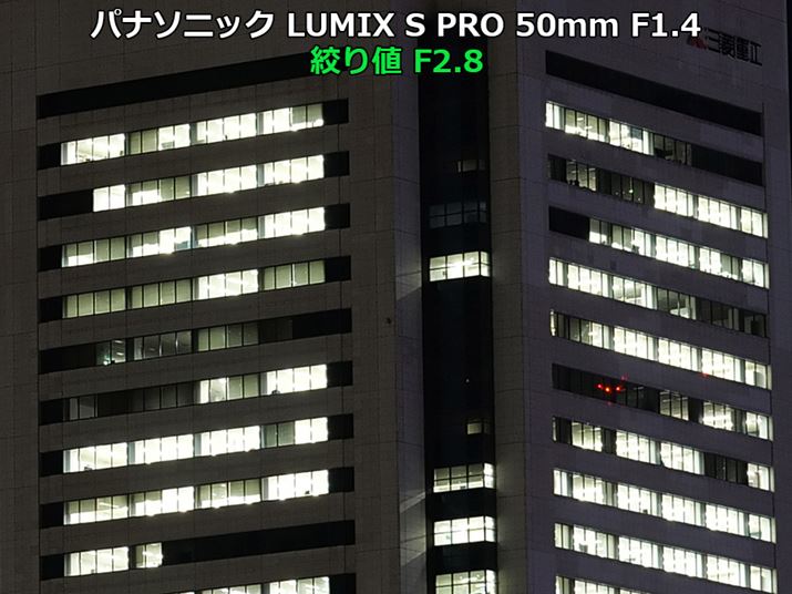 状況:晴天夜(日没約2時間)。被写体までの距離(ピント位置)は約250m(※ピントは写真左に位置する建物に合わせている)