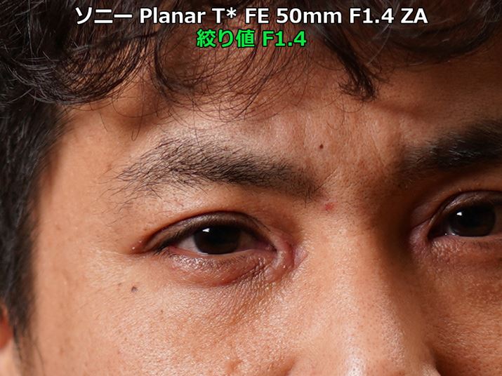 ・モデリングライトのみの暗い状況でAFを動作させたが、ほかの4本に比べて、Planar T* FE 50mm F1.4 ZA+α7R IIIは瞳AFの精度が低くて気になった。ほかの作例でも同様なのだが、Planar T* FE 50mm F1.4 ZA+α7R IIIは暗所でのAFがやや不安定なようだ。