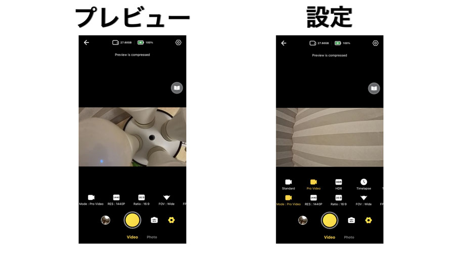iOS/Android用の無料アプリと本体を接続すると、映像のプレビューが行えます。わずかにラグがあるので、エクストリームスポーツのような動きの早い被写体を撮影するのは難しいかもしれませんが、カジュアルなVlogの撮影などは問題なく行えるレベルです。