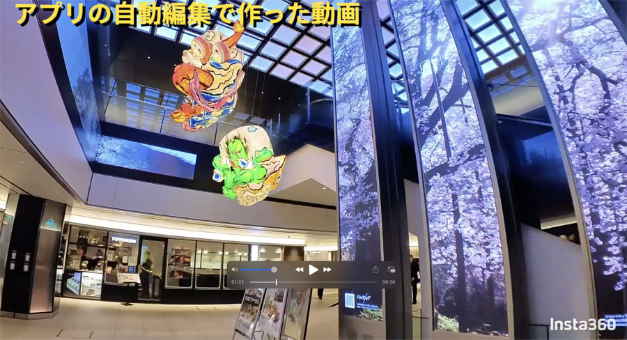 日中での撮影は一見すると、左の「Insta360 GO」のほうが明るくキレイに見えますが、よく見るとライトのにじみやディテールの不鮮明さが残る映像です。対して「Insta360 GO 2」は、少し暗めの仕上がりになるものの、おおむね実際に目で見ていた印象に近い映像になっています