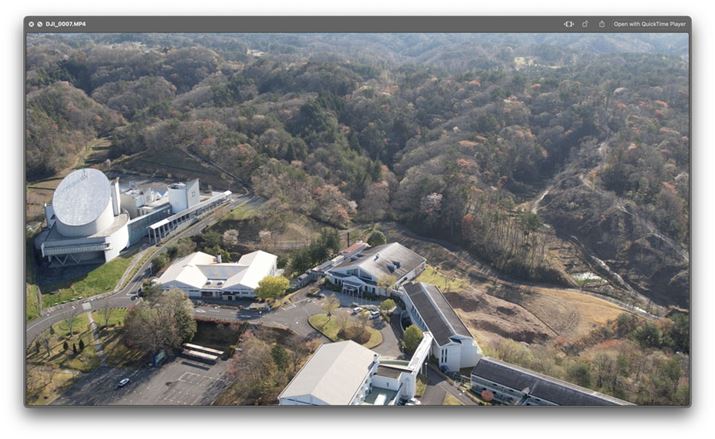 センサーサイズがこのサイズのドローンに搭載されるものとしては大型の1インチとなっており、撮像素子のピッチも 2.4μm と大きめなので、諧調表現がなめらかです。ミラーレスカメラを使って地上で撮影した映像などと組み合わせて使用する場合でも、違和感なく使用できるクオリティとなっています。