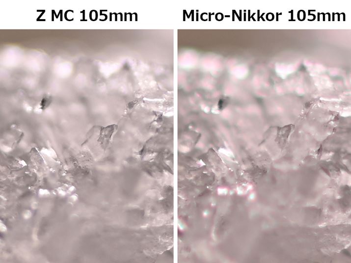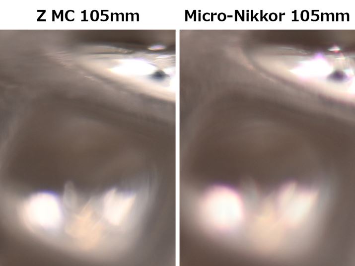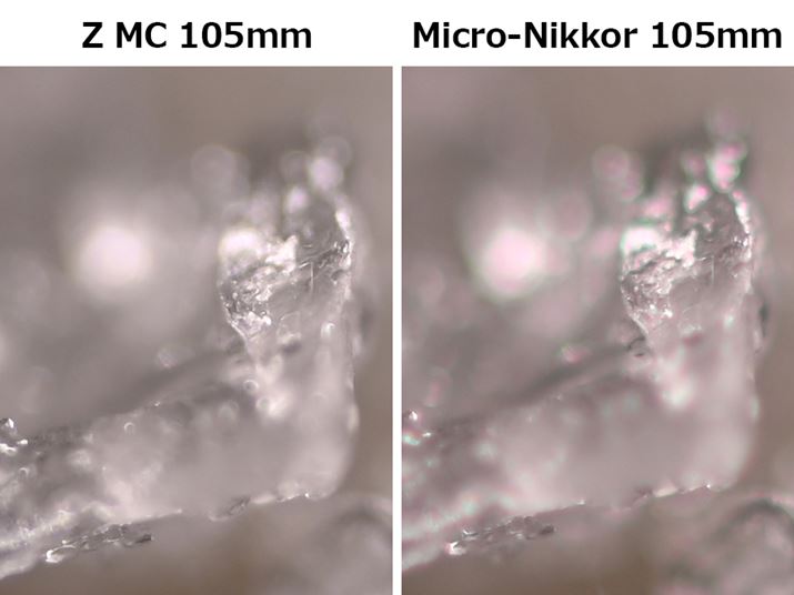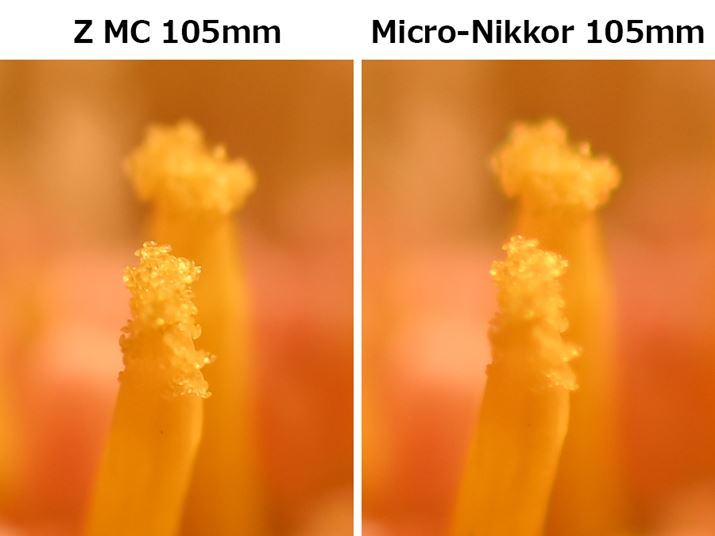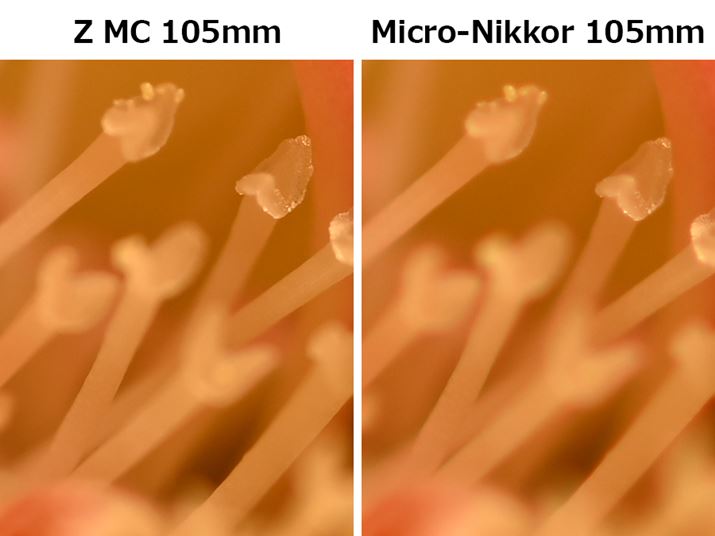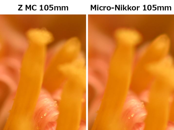 最後に、同じスペック(焦点距離105mm、絞り開放F2.8、最大撮影倍率等倍)の2つのレンズ、NIKKOR Z MC 105mm f/2.8 VR SとAF-S VR Micro-Nikkor 105mm f/2.8G IF-EDを使って、同じ被写体を近接で撮り比べた結果を掲載します。