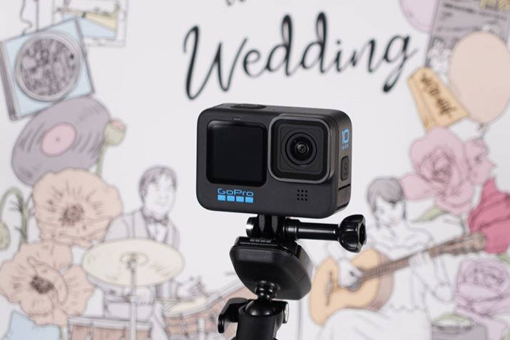 続いては、披露宴で「GoPro」を使う場合の設定等について考えていきましょう。「GoPro」製品にはいくつか種類がありますが、最新モデルは「HERO10 BLACK」で、最大5.3K/60fps、4K/120fpsの撮影に対応しています。また、手ブレ補正「Hypersmooth」が4.0へ進化し、より安定した映像を撮影することができるようになりました(詳しくはこちら→GoPro「HERO10 BLACK」登場! チップ一新で劇的進化を遂げる)。