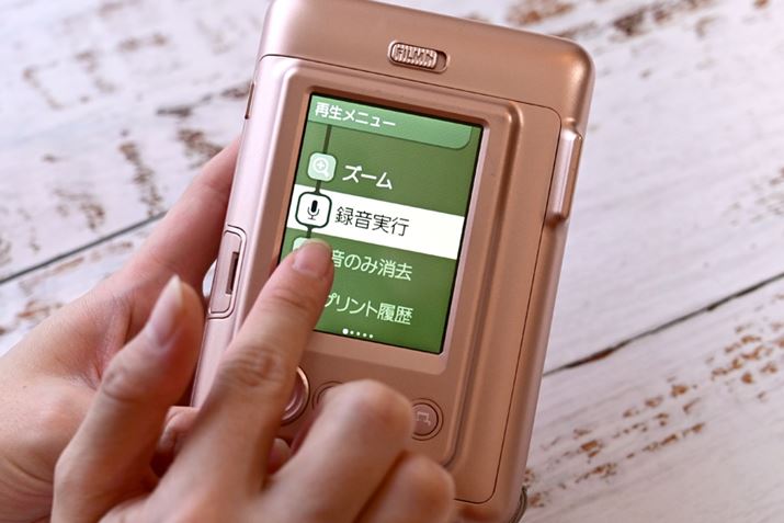 続いて、「instax mini LiPlay」の最大のポイント! 「音声収録」をしてみましょう。