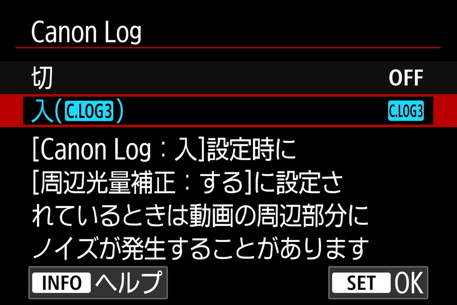 Canon Log 3(10bit)に対応しており、グレーディングを前提とした撮影も可能
