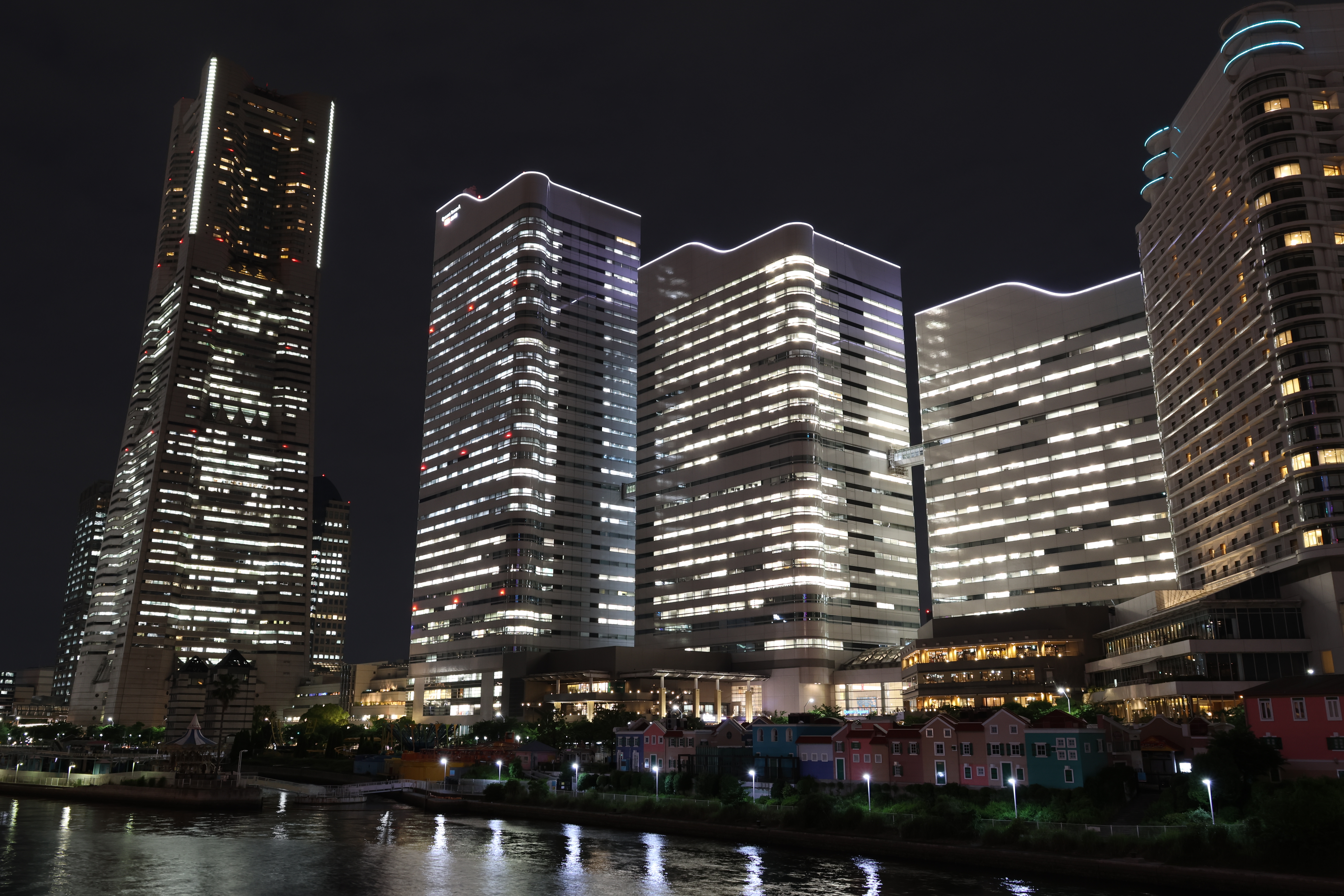 以下に掲載する作例は、高倍率ズームレンズ「RF-S18-150mm F3.5-6.3 IS STM」の広角端で、夜景を手持ち撮影したものになる。シャッタースピードは0.8秒。シャッタースピードを段階的に遅くしながら、手ブレの影響を抑えられる限界値を試しながら撮ってみたところ、「遠景・広角」の条件では、シャッタースピードが0.6〜0.8秒くらいであれば、半分くらいの確率で、画面全域で手ブレを抑えた写真に仕上がった。シャッタースピードが1秒だと、画面の中央は問題ないが、周辺は回転ブレの影響によってわずかに流れるような描写になることが多かった。