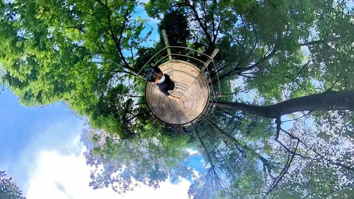 360度カメラらしい全天球のスクリーンショット。こういった特殊なアングルだと、5.7Kでも十分見栄えがあります