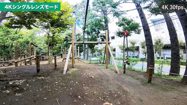 5.7K/30fpsの動画のスクリーンショット。さすがに、遠くいに木の葉っぱなどはつぶれてしまっている部分もあるのですが、一般向けの360度カメラとしては十分キレイなレベルを保っています