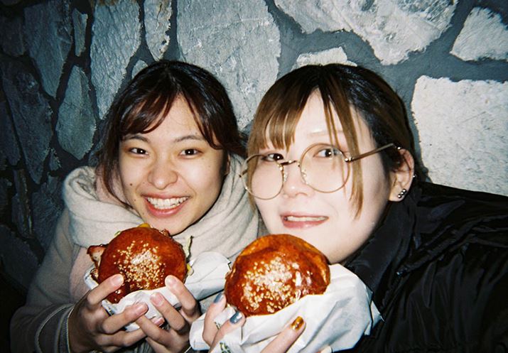 今回の取材に協力いただいた、こいけろさん(左)と、あひるさん(右)。ともに太田プロのピン芸人さんです。 この写真も「写ルンです」で撮影したもの