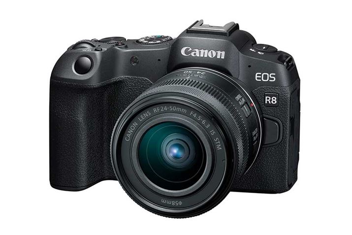 キヤノンから、フルサイズミラーレスカメラ「EOS R8」が登場。ラインアップとして、ボディ単体と、「EOS R8・RF24-50 IS STM レンズキット」(標準ズームレンズ「RF24-50mm F4.5-6.3 IS STM」付属)を用意する。