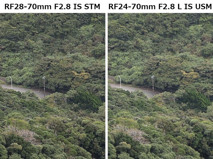 続いて、望遠端(70mm)/絞り開放での比較を見ていきましょう。「RF28-70mm F2.8 IS STM」は望遠端も非常に高画質で、コントラスト、シャープネスとも画面全体で安定しています。本レンズは「Lレンズ」ではありませんが、それに匹敵するほどの高画質を実現していることがよく理解できる1枚になりました。
