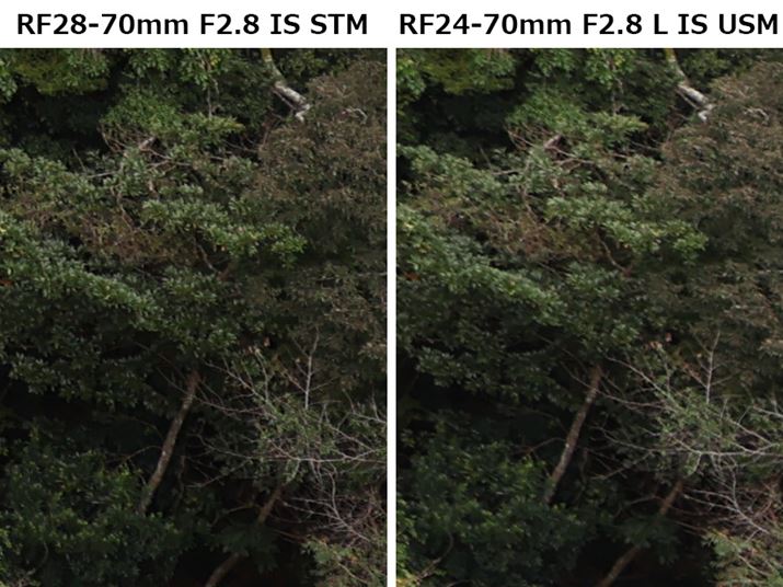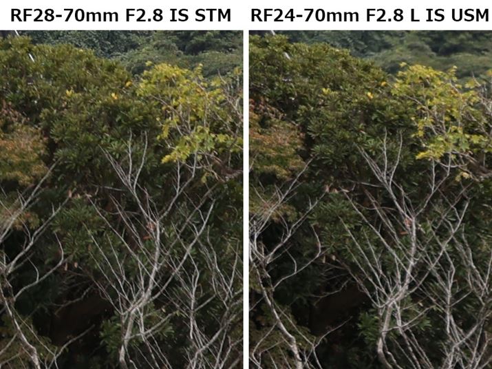 ここからは、「RF28-70mm F2.8 IS STM」の解像性能を確認していきたいと思います。今回は、広角端の焦点距離こそ異なりますが、同じくキヤノン製の大口径・標準ズーム「RF24-70mm F2.8 L IS USM」と比較してみました。高性能で知られる「Lレンズ」との比較ですので、「RF28-70mm F2.8 IS STM」がどこまで迫れるのかに注目してください。