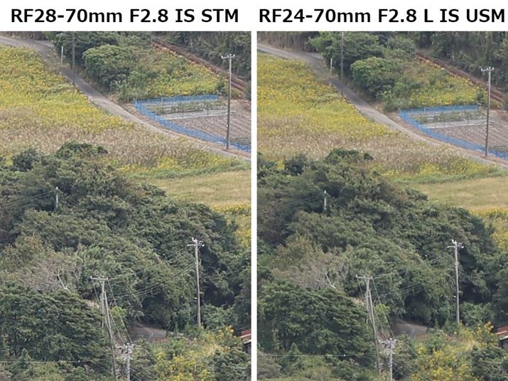 いっぽうの「RF24-70mm F2.8 L IS USM」は、結果としては、画面中心付近の描写性能は「RF28-70mm F2.8 IS STM」とおおむね同程度。さらにその高い描写性能は周辺でも維持され、画面全体で安定的に高画質を実現しているというものでした。ここはさすが、キヤノンの誇る「Lレンズ」だけあります。