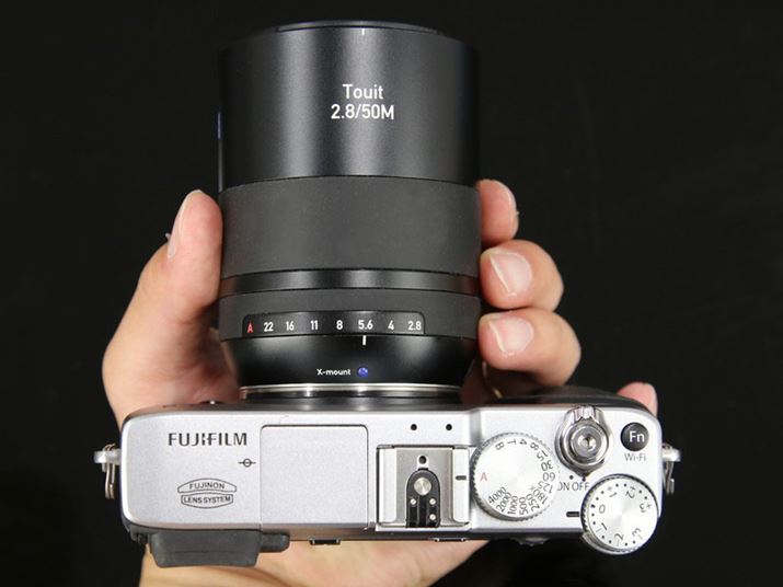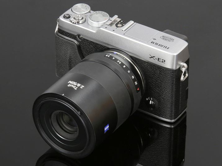 カールツァイス「Touit」シリーズのマクロレンズ「Touit 2.8/50M」。写真は、富士フイルムのAPS-Cミラーレス一眼「FUJIFILM X-E2」に装着したもの