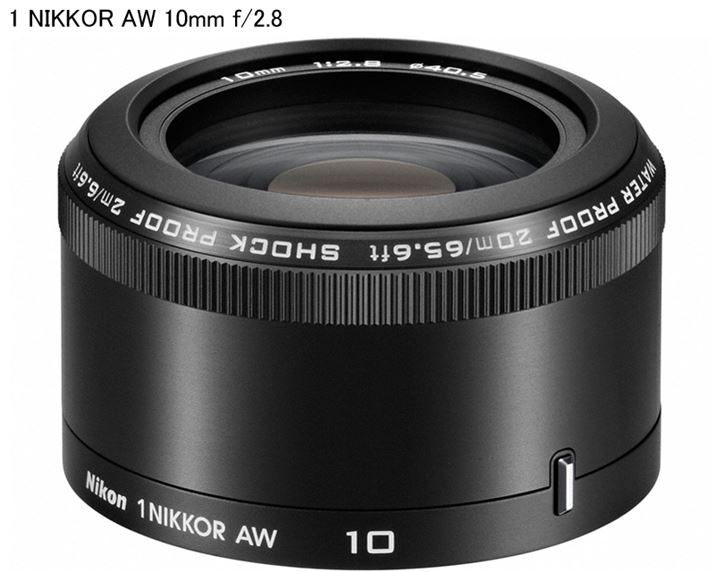 広角単焦点レンズ「1 NIKKOR AW 10mm f/2.8」(写真上)は単体販売しているが、標準ズームレンズ「1 NIKKOR AW 11-27.5mm f/3.5-5.6」(写真中)は「Nikon 1 AW1 防水ズームレンズキット」(写真下)でのセット販売となっており、単体販売はしていない(2014年10月10日時点)