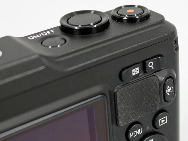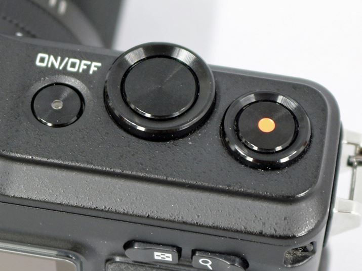 電源ボタン、シャッターボタン、動画撮影ボタンは天面に配置。異なる大きさとなっているのは、ボタンを見なくても操作できるようにする工夫だという