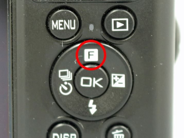 メニュー画面の「撮影モード」を選択し、「オートモード」→「ライブコントロール」と操作することもできるが、「オートモード」の状態であれば、「F」ボタン(赤い囲みの部分)を押すだけで「ライブコントロール」の設定画面を表示可能