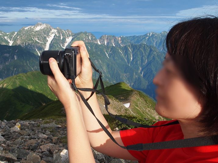 ほかのミラーレス一眼と比べると少し重めだが、とてもグリップ感がよく、歩きながらでも取り出してサッと構えることができる。ただ、登山中は常に斜めがけしている状態だったので、岩を登るようなシーンでは耐衝撃とはいえ、ぶらぶらと動いてしまうカメラが気になった。もっと利便性の高いストラップを用意したほうがいいかもしれない。