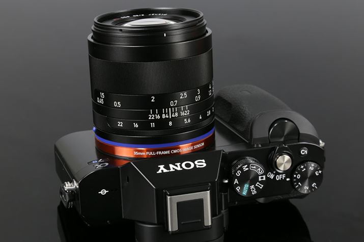 α7SにカールツァイスLoxia 2/50を装着。直線的で凝縮感のあるα7シリーズにマッチするコンパクトレンズだ