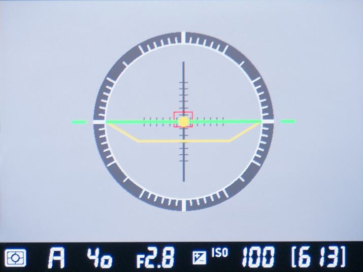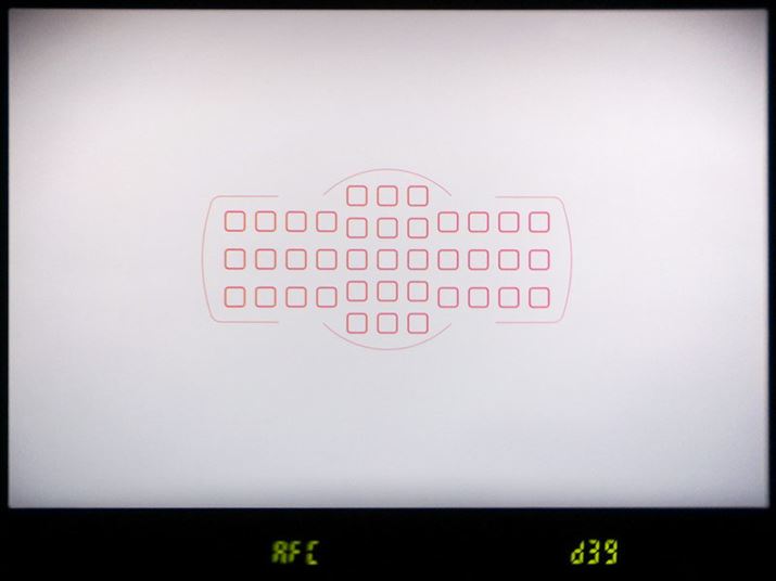中央9点がクロスタイプ、中央7点がf/8対応の39点オートフォーカスシステムを採用(※写真はファインダー内をデジタルカメラで撮影したものになります)