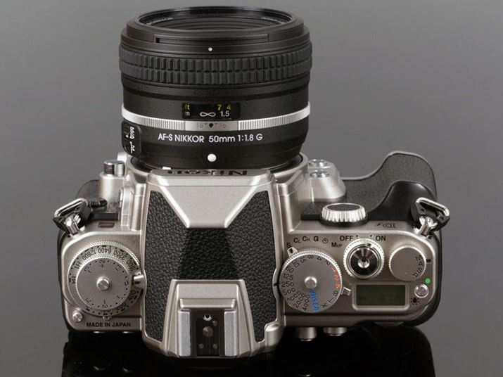 「Df 50mm f/1.8G Special Editionキット」に付属する単焦点レンズ「AF-S NIKKOR 50mm f/1.8 G Special Edition」を「Df」に装着したイメージ。「AF-S NIKKOR 50mm F1.8 G」をベースにデザインを変更したレンズで、レザートーンの塗装や、アルミ製のシルバーリング、MFレンズのラバーローレットを再現したフォーカスリングなどを採用している