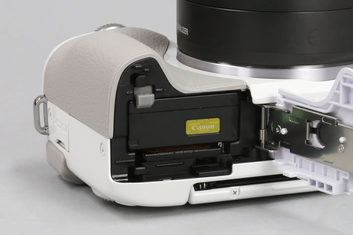 対応バッテリーは、新型の「LP-E17」(8.4V・700mAh)になった。同時発表のデジタル一眼レフ「EOS 8000D」「EOS Kiss X8i」でも採用されたバッテリーだ。EOS M3の撮影可能枚数は約250枚で、EOS M2の約230枚からわずかにスペックアップしている