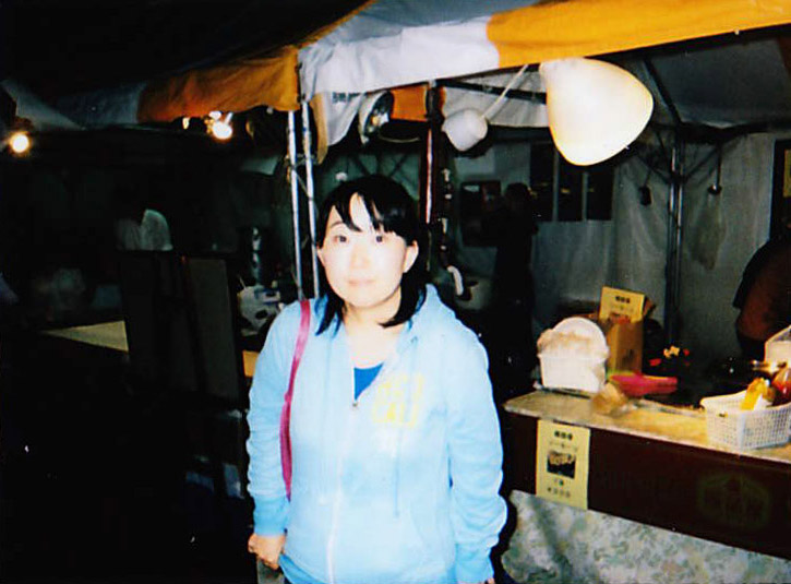 パーティーモードは、暗い室内でフラッシュ撮影をすると、背後が真っ暗になってしまうことを防ぐためにできたモードだ。室内の明るさに応じて、フラッシュの発光量を調整し、背後もキレイに写してくれるというのがウリ。人物の後ろもキレイに写すという点では、室内も屋外も関係ないのでは?と勝手な解釈で、今回は屋台の前で撮影をしてみた。