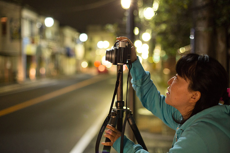 三脚を使ってバルブ撮影。夜間の撮影には三脚を使用。「instax mini 90」から搭載された新機能・バルブ撮影に挑戦