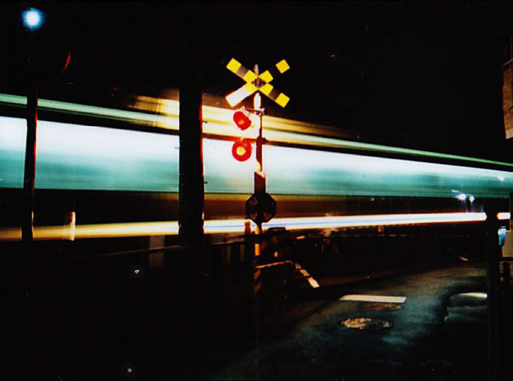 バルブ撮影作例(動きあり)。シャッタースピード10秒のバルブモードで、電車を撮影。このくらいの距離だと、バルブモードの実力を発揮してくれる