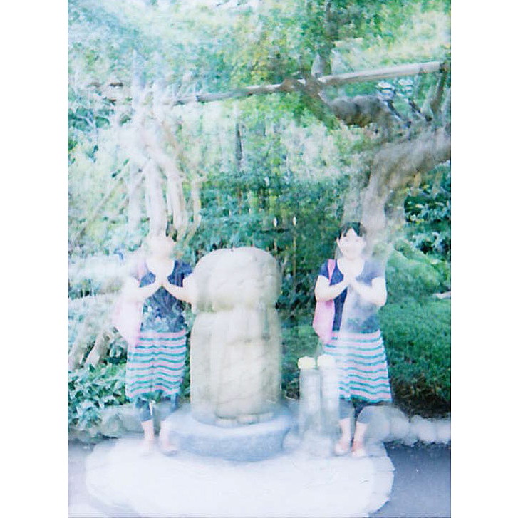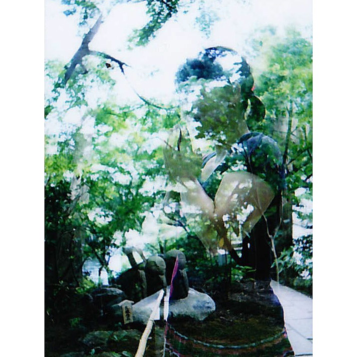 二重露光そ作例の2。1ショット目に地蔵を撮り、2ショット目に人物を撮る。何と何を組み合わせるとおもしろい写真ができるか、カメラマンのセンスも問われる機能だ