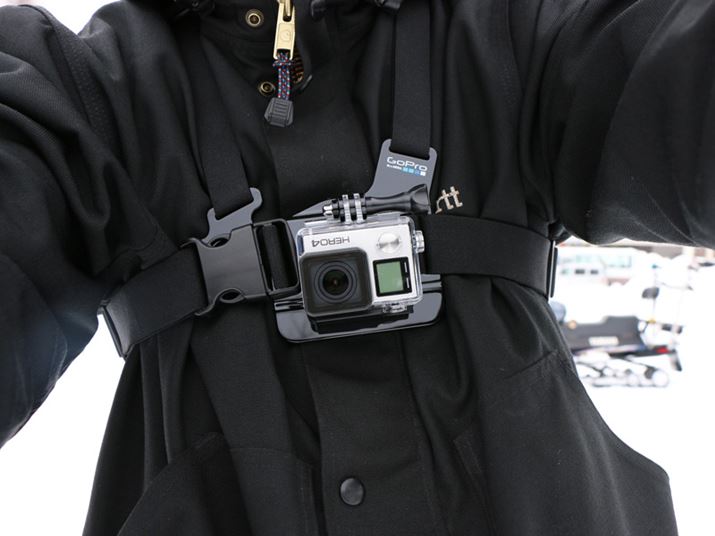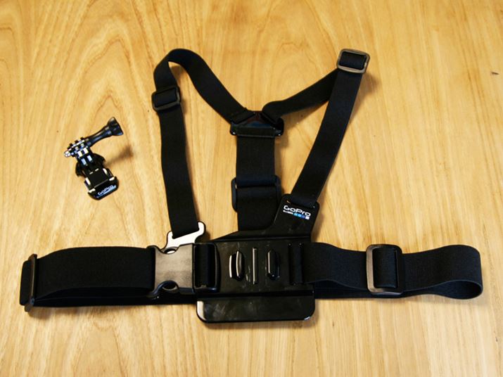 「チェストマウントハーネス GCHM30」を利用し、胸の位置に「HERO4 Silver」がくるようにセット