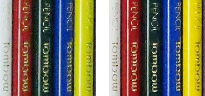 ※以下の画像は、撮影写真の一部分(それぞれの機種で300×300)をピクセル等倍で切り抜いたものになります。クリックすると、より大きなピクセル等倍の切り抜き画像(それぞれの機種で450×450)が開きます。また、撮影写真は、切り抜き画像下のテキストリンクをクリックすると開きます。撮影写真は開くのに時間がかかる場合があります。